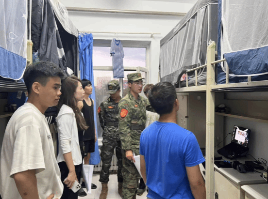 为了加强军训期间的内务管理,提升学生的自我管理能力和纪律意识。yl23455永利于2024年8月30日晚开展了军训内务检查。教官、yl23455永利新生辅导员以及各班班导生走进新生宿舍,检查新生宿舍内务情况。