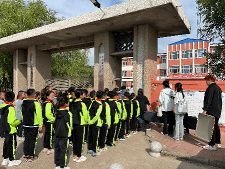 2个小时后,实践团抵达大庆市红岗区民吉小学,在大庆市红岗区民吉小学校长刘春冬带领下,举行“永利集团2024年暑期“三下乡”社会实践团对接启动仪式“。
