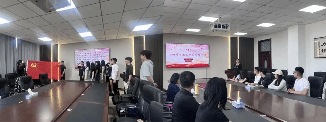会议最后,大学生党支部书记马晓红带领全体毕业生党员重温入党誓词,并以“坚定理想信念,勇担时代使命”为题,为毕业生们上了一堂生动的离校党课。马晓红书记期望毕业生党员们能够带着在学校所学的知识与本领,坚定理想信念,勇担时代使命,以艺术创作弘扬时代精神,用画笔描绘祖国发展新貌。无论未来身处何方、从事何种工作,都要时刻铭记自己的党员身份,以更高标准严格要求自己。同时,他还结合党章对党员的要求,号召同学们持续加强理论学习,保持终身学习的热情,不断提升自身思想境界和综合素质,在各自岗位上为党和国家的事业发光发热!