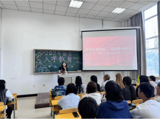 随后,张丽坤书记强调:“身为一名大学生,要自觉规范自身在校园中的行为,在思想上、学习上、生活上有所转变,主动成为有理想、有主见、讲纪律的时代青年。”同时希望同学们严格遵守校规校纪,在开课之前要做好充分的准备,做到不迟到、不早退,树立纪律意识,合理规划大学生活。