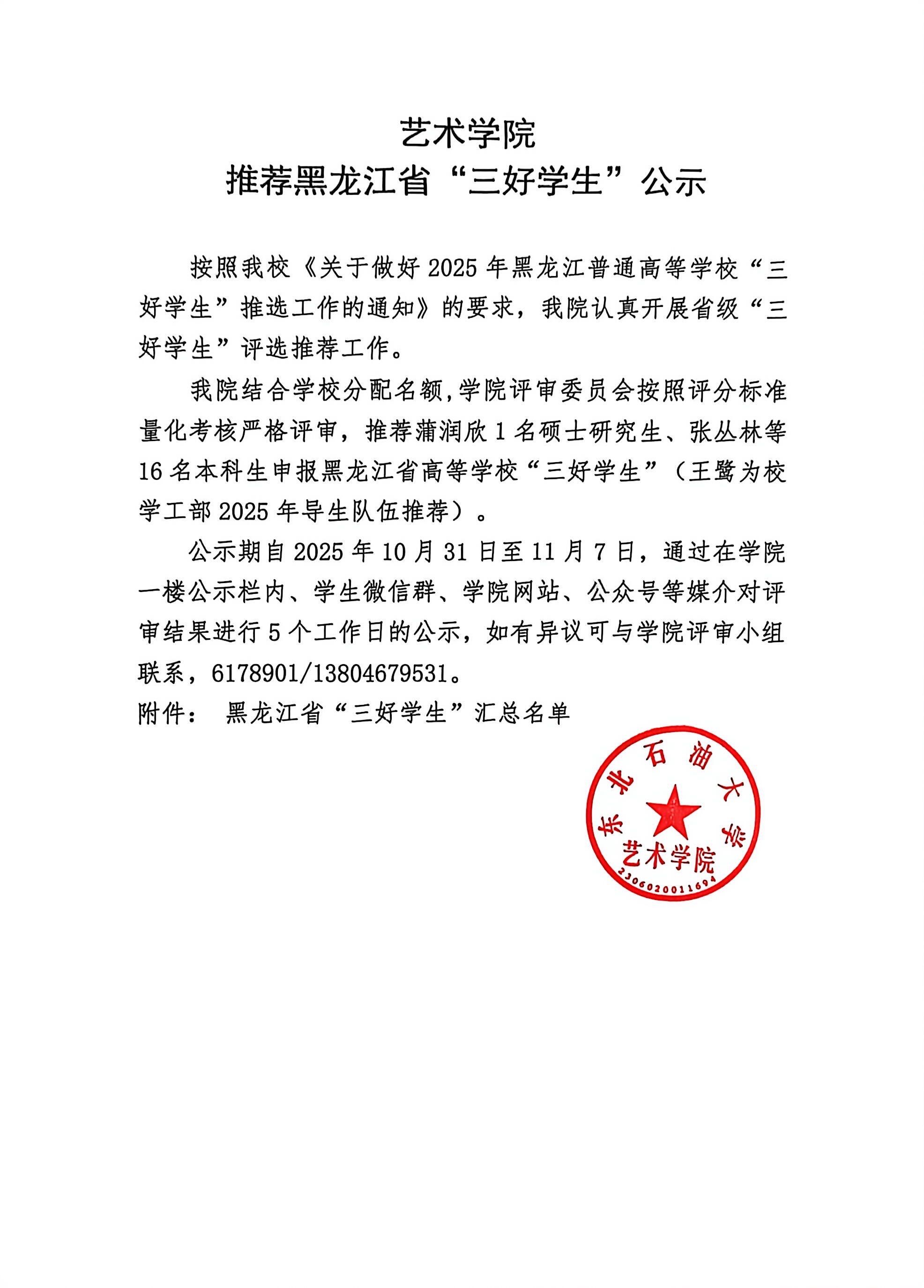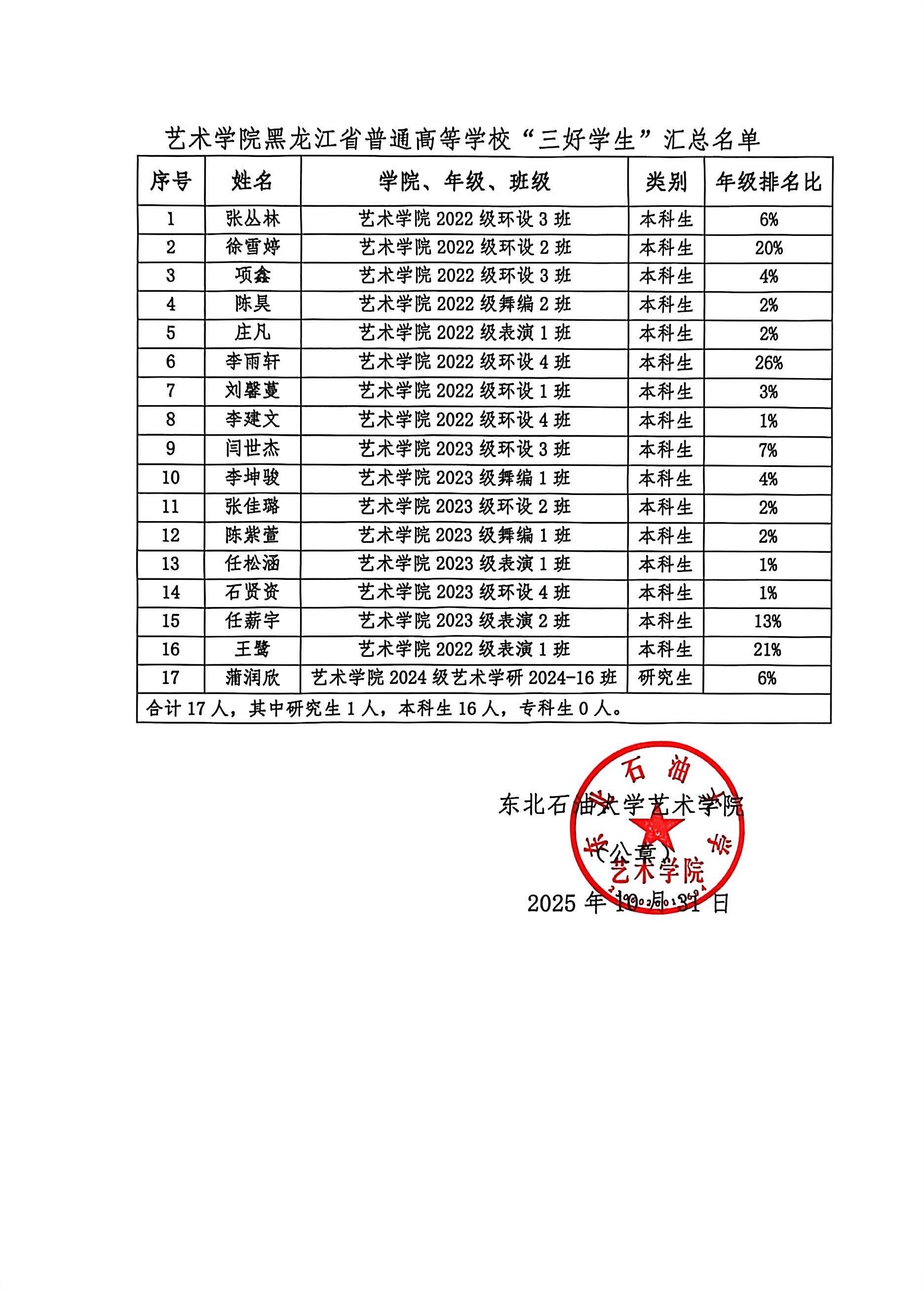 yl23455永利推荐2025年黑龙江省“三好学生”公示名单
